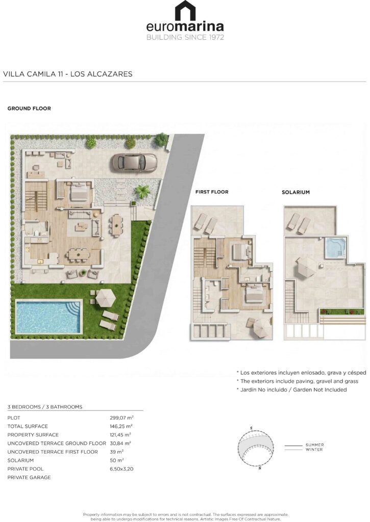 Hver villa har 3 romslige soverom og 3 moderne bad, samt privat basseng, privat parkering og et stort solarium.