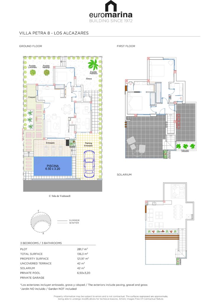 Varje villa har 3 rymliga sovrum och 3 moderna badrum, samt privat pool, privat parkering och ett stort solarium.